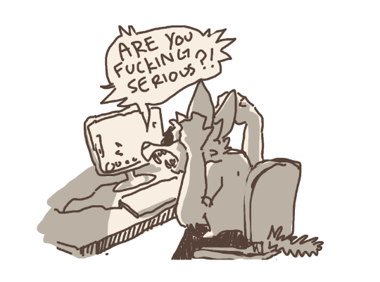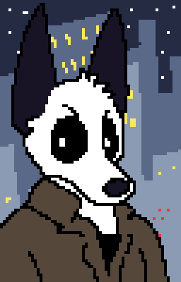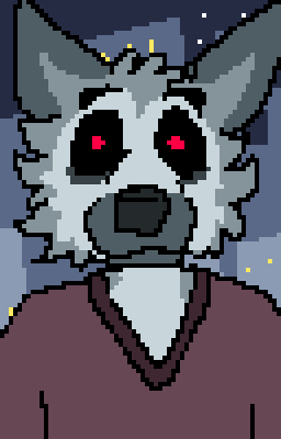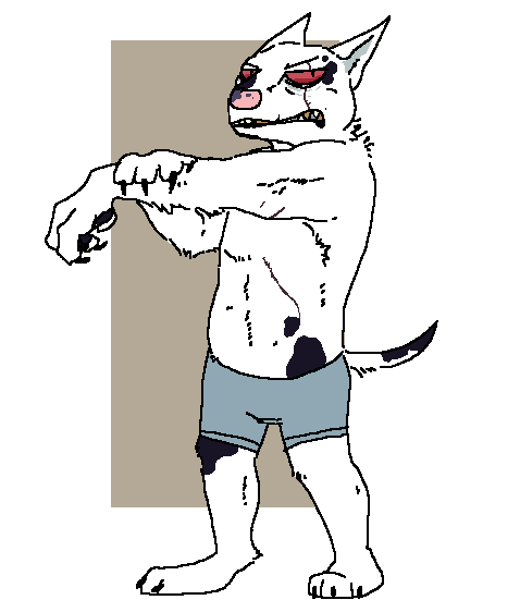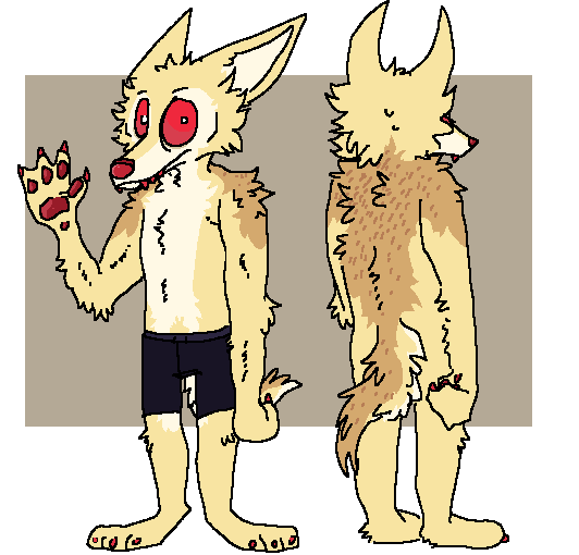 is a weird monster looking coyote, I think. He's really tall for one.He is not ashamed of being a half monster freak, but is insecure about himself on the downlow. He loves his family and spends a chunk of money on them. He enjoys games but you'd really never guess that.