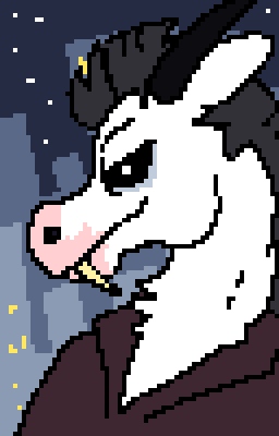 He always seems to look annoyed and tired, but in most interactions is friendly, if super shallow about how someone dresses and looks. That said, if you pop up dressed like shit, he will offer advice rather than pick on you. He is kind of a womanizer and doesn't really understand deeper topics, but he's really cunning and seems to be Howard's co-leader or otherwise high up on the ladder. He is for some reason fond of Fermin, but seems to only tolerate Mike, I think that they are just both very stubborn and definitely get along but Damien doesn't seem to want to be around him as often. I'm also not sure why, but he will randomly pick and choose people he wants to be gentle and sweet to. A patient guy who looks a lot more angry than he ever is in most cases. He is deceptively strong, and I think it's because he's not just a horse but some sort of Creature. Like others with those messed up eyes, he can see very well in the dark but not as well during the day time. I think it is for that reason that he is a late night party guy.